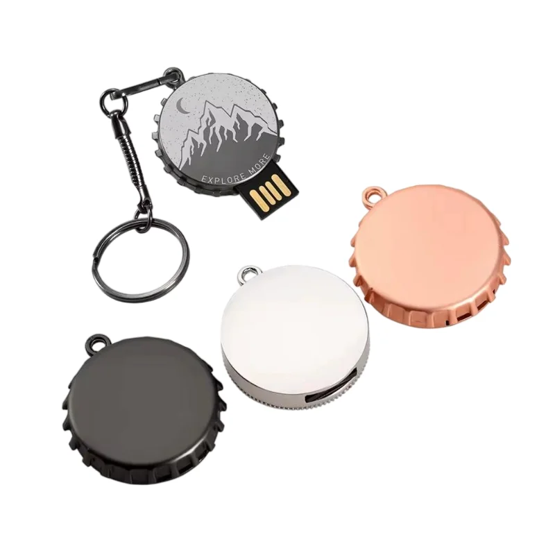 Aluminum Alloy Bottle Cap USB Drive ingeniously integrates everyday bottle cap elements into digital products. Crafted from aluminum alloy, it replicates the shape and serrated anti-slip texture of common bottle caps in a 1:1 scale. Available in multiple anodized color options—Silver Gray, Rose Gold, Snow White, Matte Black, and Champagne Gold (Light Yellow)—the USB drive features rich, vibrant hues and a premium texture, catering to diverse style preferences.