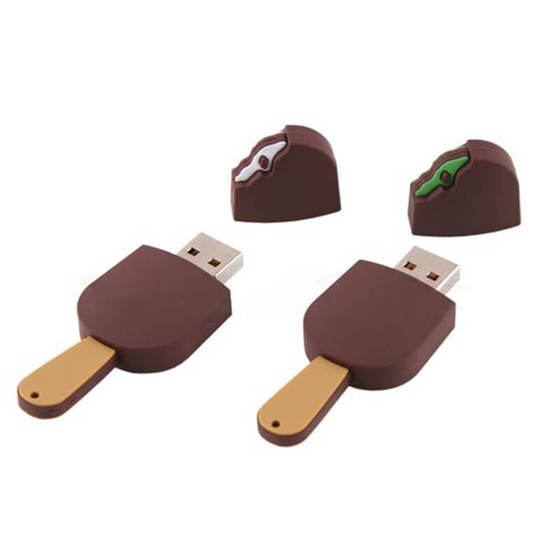 The four designs in this USB Flash Drive have been created to resemble Ice Cream Scoops made from Soft PVC Plastic. The split body of the product allows for the USB port to be hidden inside it, providing easy accessibility for the user.