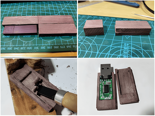Hollowing out and slotting:It is necessary to hollow out a suitable space on the wood to place the internal electronic components of the USB flash drive and to slot out the USB port.This process requires the use of professional tools,such as carving machines,milling machines,etc.,and to ensure the dimensional accuracy of hollowing and slotting,so that the electronic components can be installed smoothly.