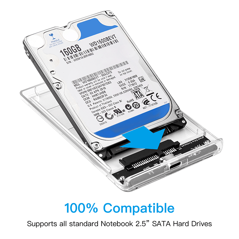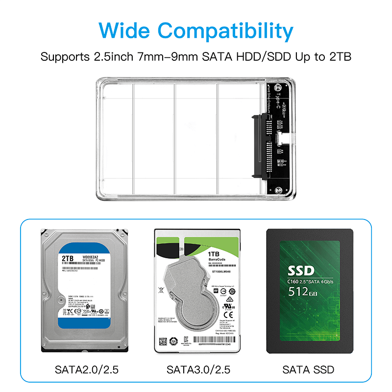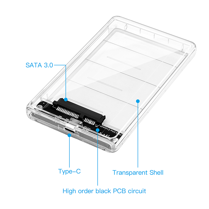Disco duro portátil de 2,5″ transparente USB3.0 a Sata3.0