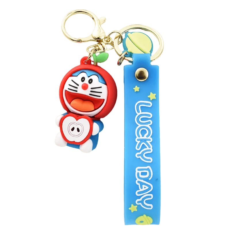 Este llavero de Apple Doraemon tiene un cuerpo principal rojo.Doraemon está abrazando una manzana mientras lleva un gorro rojo, creando un aspecto irresistiblemente mono.La muñequera de PVC viene en azul clásico y admite la impresión de logotipos personalizados. Además, puede elegir su color favorito para la personalización.
