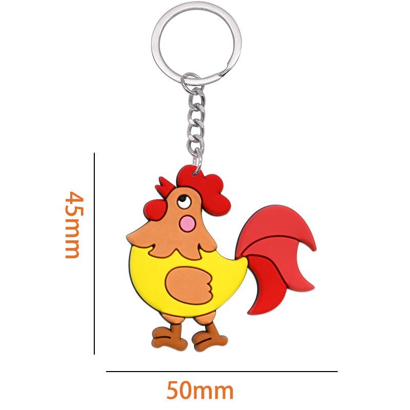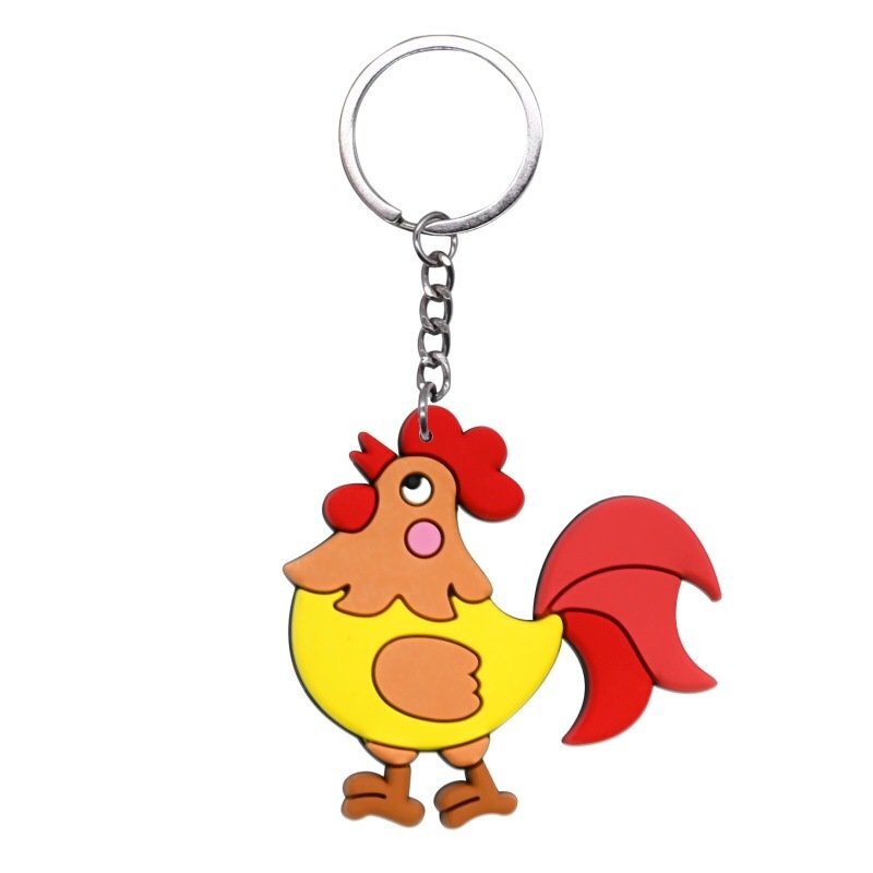 Este llavero presenta un diseño de gallo de dibujos animados, que combina hábilmente el espíritu vivaz de las aves de corral con una estética adorable. Su cresta rojo fuego y las atrevidas plumas carmesí de su cola lo hacen reconocible al instante, mientras que su cuerpo amarillo vibrante irradia energía. El rubor rosado de sus mejillas y sus ojos muy abiertos dan al gallo un aspecto encantador y entrañable que llama la atención al instante.