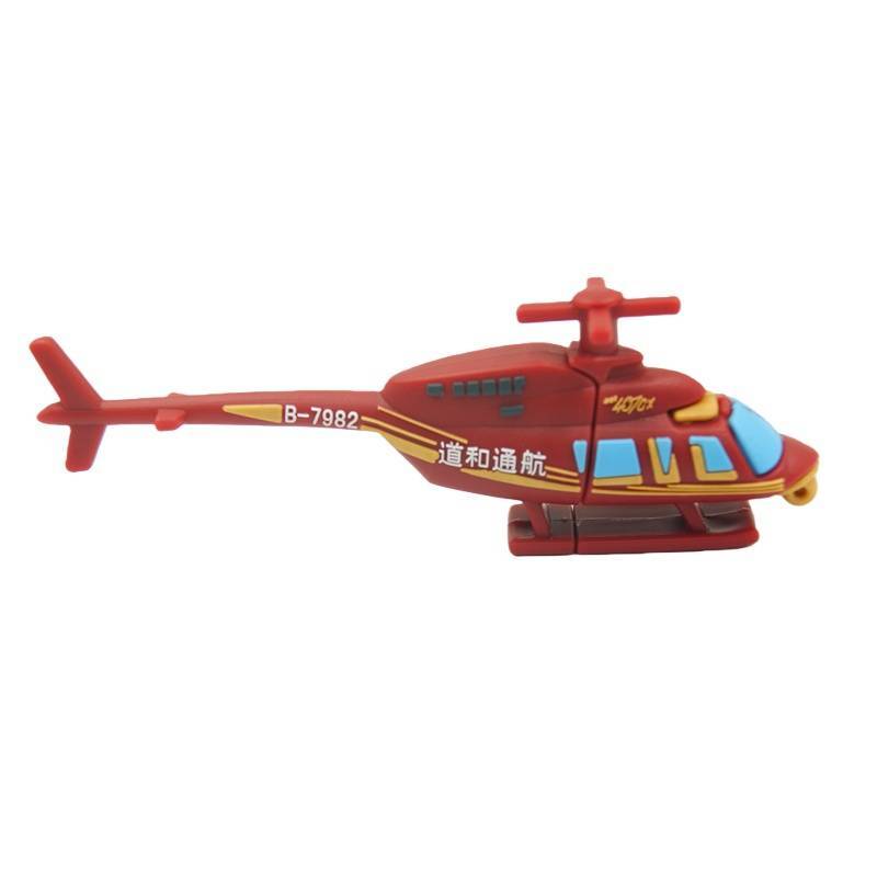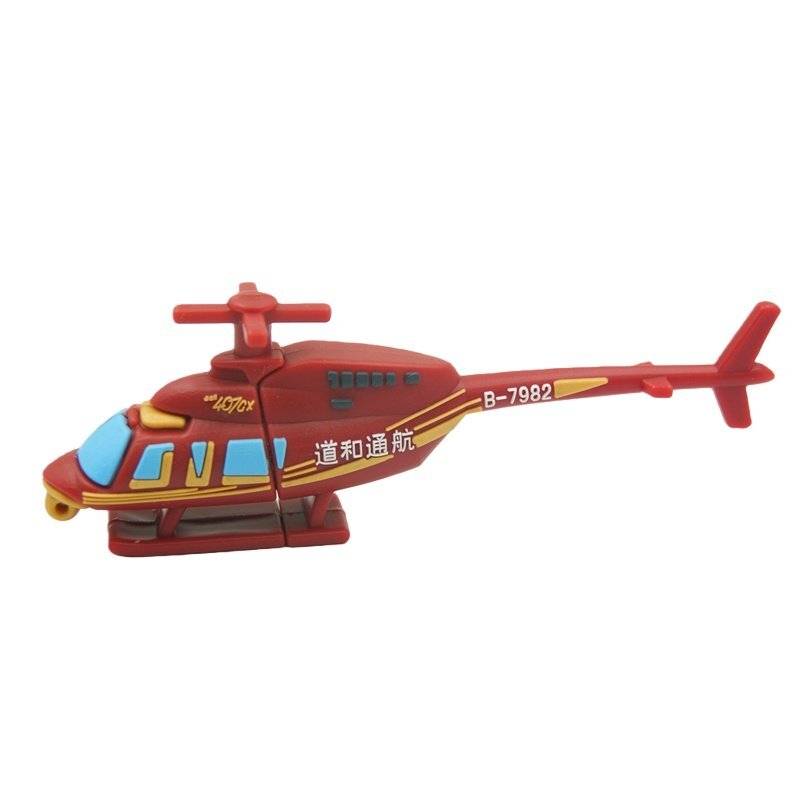La unidad USB Daohe Helicopter está diseñada para parecerse al modelo que representa, con su combinación de colores rojo brillante, el logotipo de Daohe Helicopter y el número de registro B-7982.