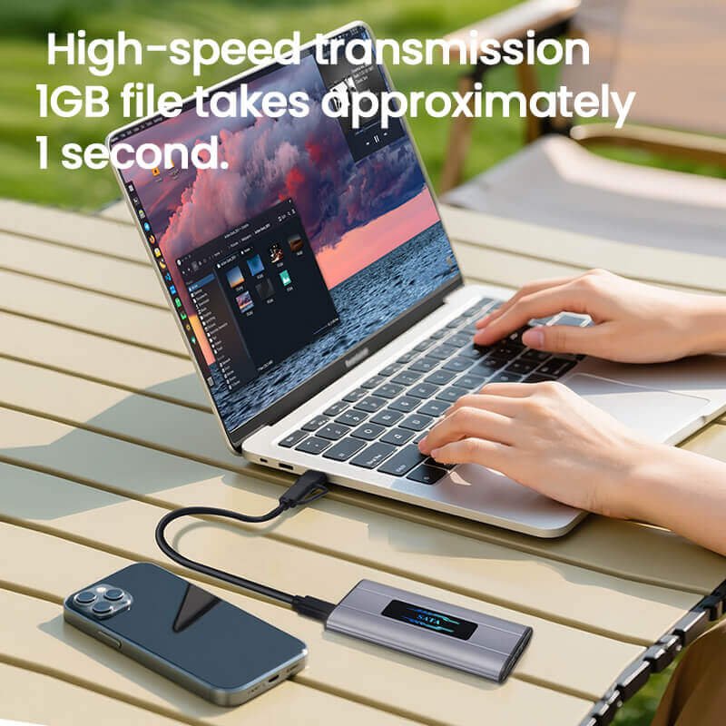 Doté d'une interface USB 3.2 Gen 2 à haute vitesse avec des taux de transfert allant jusqu'à 10 Gbps et l'accélération UASP, il transfère un fichier de 1 Go en environ 1 seconde.