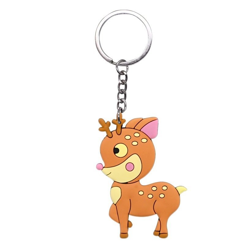 Ce petit porte-clés en forme de cerf capture la grâce d'un fauve de la forêt dans une breloque de poche. Attachez-le à vos clés ou à votre sac pour susciter instantanément l'enthousiasme d'une jeune fille. Son corps brun chaud est parsemé de taches jaune pâle, comme la lumière du soleil filtrant à travers la canopée de la forêt. Un fard à joues rose et un mignon petit nez ajoutent du charme, tandis que des bois ludiques sont perchés sur sa tête. Ses grands yeux ronds brillent d'innocence et sa posture laisse présager un pas léger et élastique, comme s'il bondissait joyeusement à travers les bois.