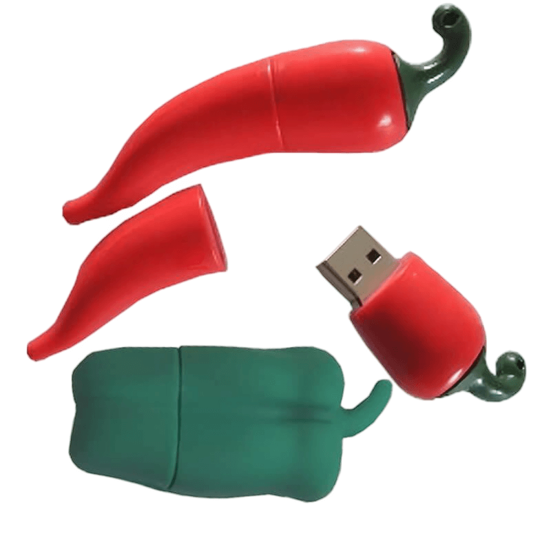 Ces clés USB se déclinent en deux modèles réalistes inspirés des fruits et légumes : un piment rouge et un poivron vert, tous deux méticuleusement fabriqués pour reproduire la forme et la couleur des fruits et légumes frais.