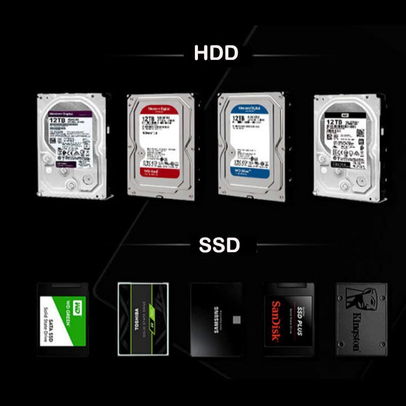Solid-state drives (SSDs) which use flash memory chips for their storage medium. They’re intended to store everything from our photos to datadocuments, system programs and game install packages: the computer’s “high-speed electronic warehouse.”