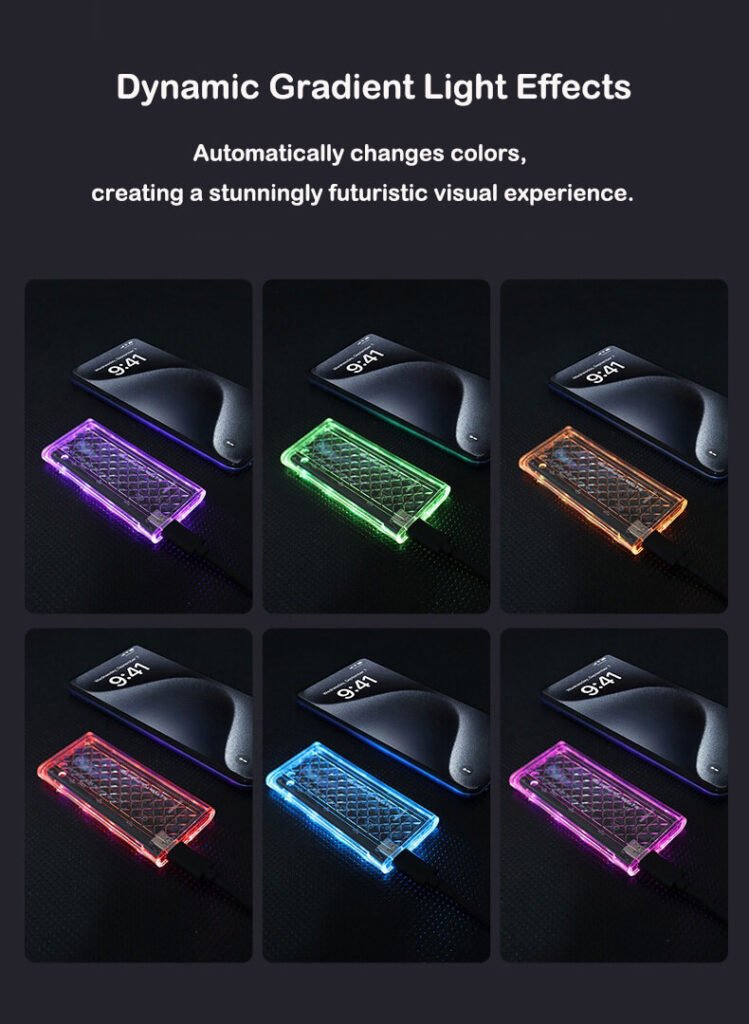 The product incorporates a dynamic gradient light system: supporting automatic RGB color cycling with smooth gradient transitions, it continuously delivers visual effects without manual adjustment. This system complements the transparent casing, enhancing the technological aesthetic while maintaining unobstructed visibility of internal components.
