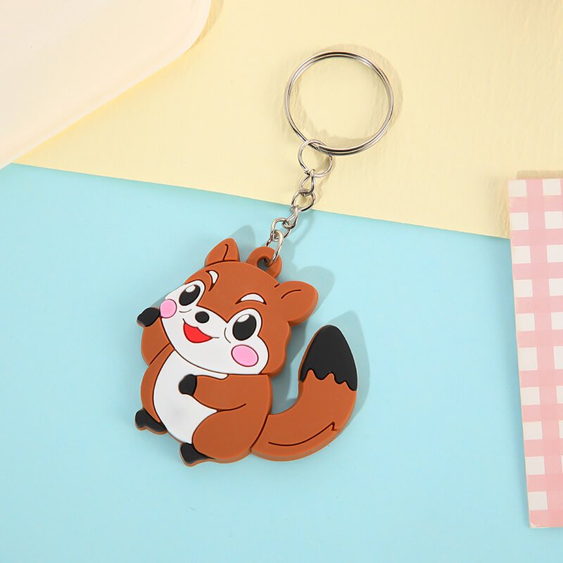This squirrel cartoon keychain is crafted from premium eco-friendly soft PVC material, precision-molded in one piece through injection molding. It features physical properties including abrasion resistance, tear resistance, waterproofing, and aging resistance. Colors undergo high-temperature curing treatment to ensure long-lasting vibrancy without fading, while the material remains environmentally friendly and odor-free.