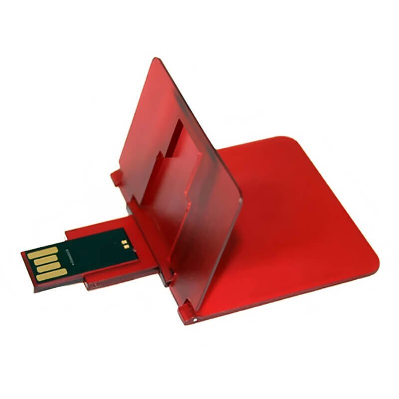 This transparent card USB flash drive is customizable and made of acrylic. Acrylic is transparent, hard, and easy to process into creative shapes like folding. This ensures the flash drive’s aesthetic appeal and protects the internal storage components.