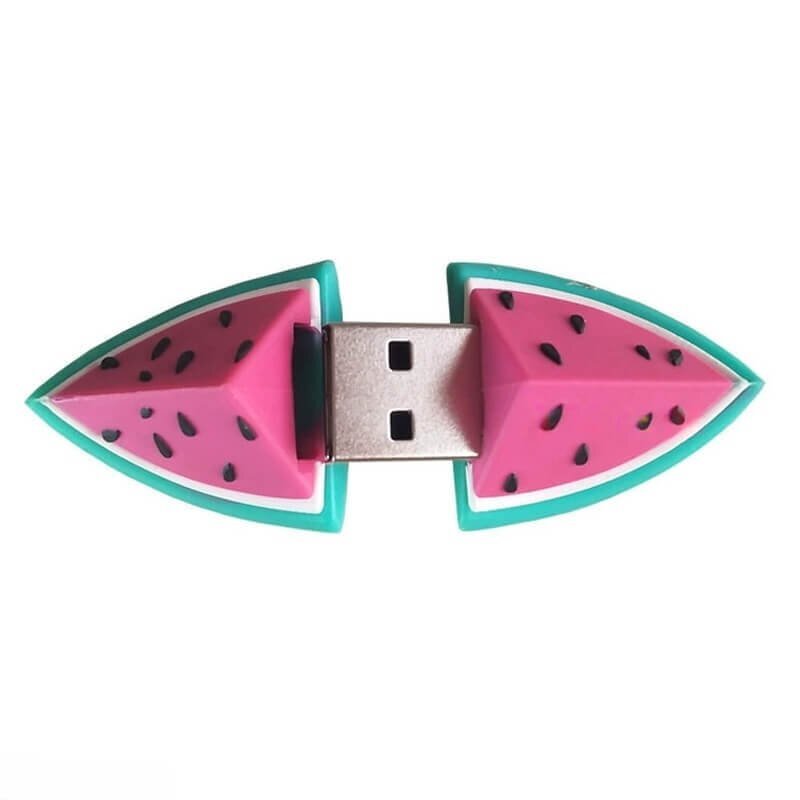 This custom USB drive features a vibrant watermelon theme, available in three delightful designs: red flesh, yellow flesh, and classic half-slice watermelon. Crafted from durable PVC, it delivers reliable performance while seamlessly blending eye-catching aesthetics with practical functionality.
