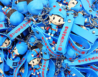 Los llaveros de dibujos animados de material PVC se dividen en dos tipos: llaveros planos simples y llaveros de figuras tridimensionales de dibujos animados. El pedido mínimo es de 100 unidades por diseño, y se puede personalizar el logo y la forma.