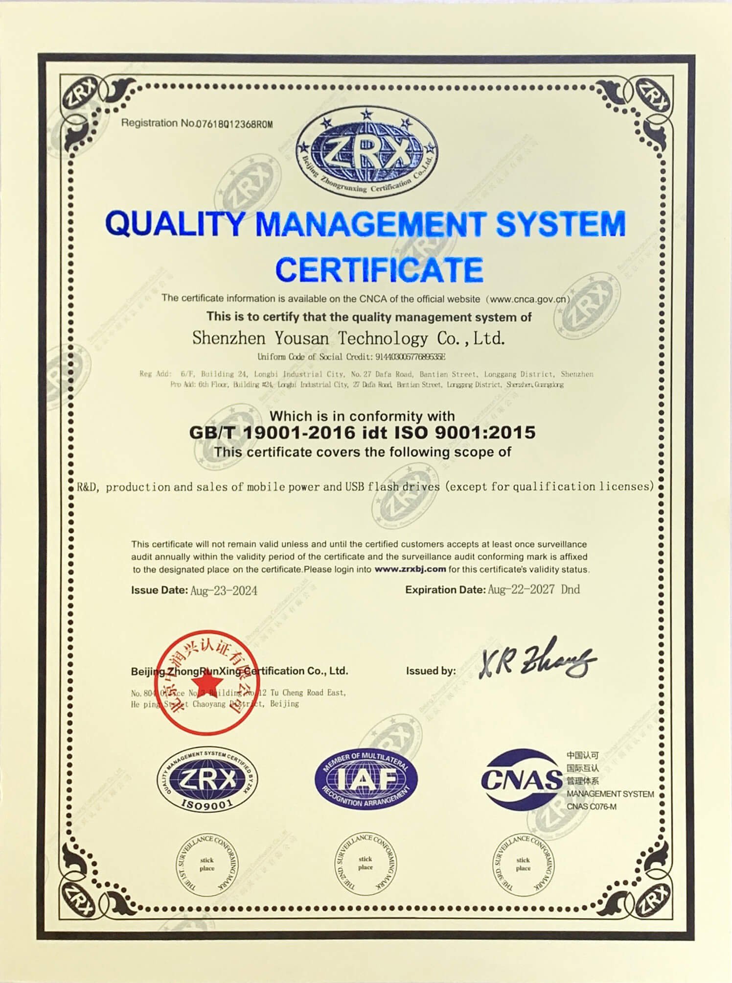 YOUSAN has obtained multiple computer software copyrights for its storage series products such as USB drives and its charging series products such as power banks.