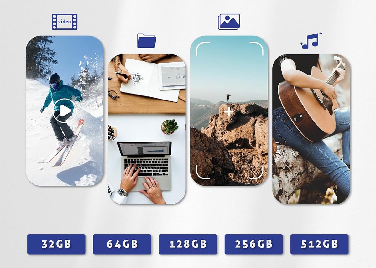 | 256GB | Designers, self-media professionals; storage of 4K videos |