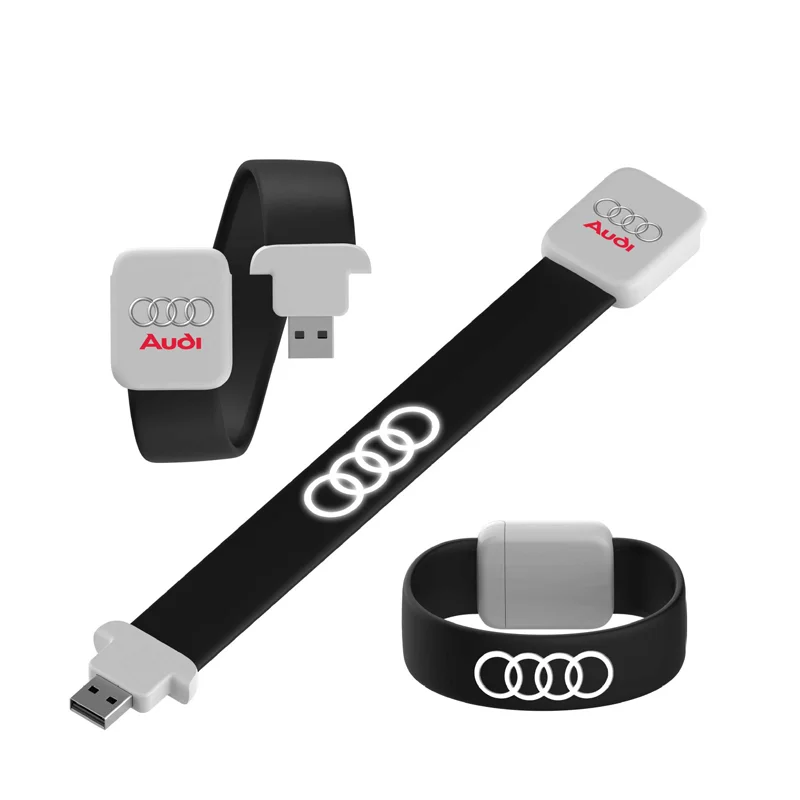 Upgraded from traditional wristbands, the new custom USB wristband features an illuminated logo. Crafted from soft, skin-friendly silicone, it offers comfortable wear without constriction. Keep it on your wrist during workouts or commutes—no more worrying about losing your USB drive in a backpack corner or on a conference table. When inserted into a device, the logo on the front of the wristband automatically illuminates with a soft glow. This makes the USB drive easy to locate in low-light environments while instantly drawing attention to your brand identity—combining practicality with high visibility.