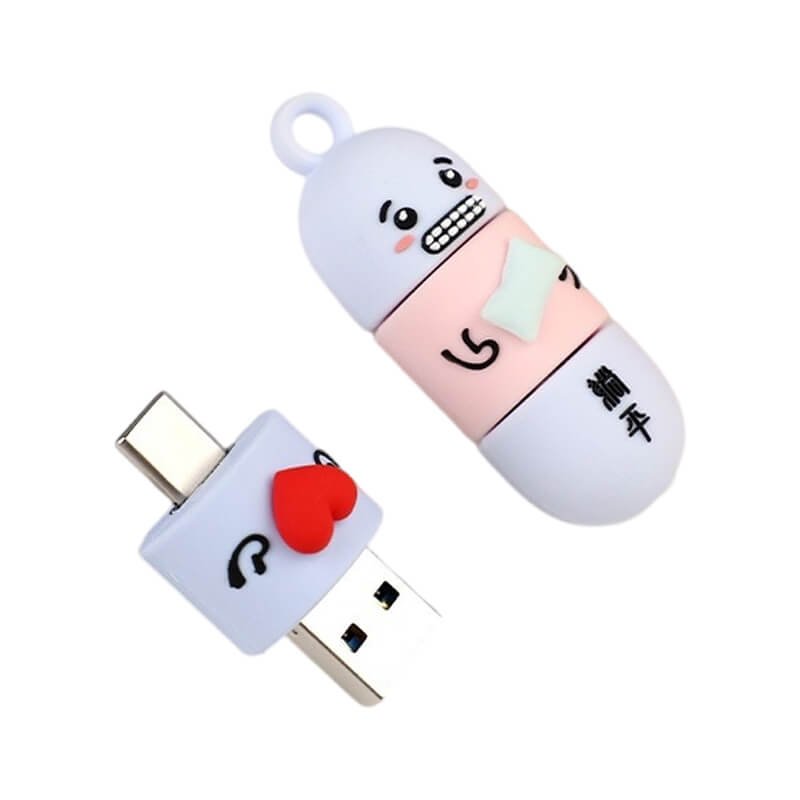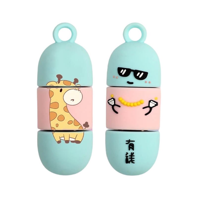 This capsule-shaped cartoon USB drive features an adorable capsule design, each exuding a unique charm that makes it irresistibly endearing. Crafted from soft PVC material, it’s waterproof, dustproof, and highly corrosion-resistant. Affordable and durable, it resists yellowing over time. Designs include an adorable giraffe, a rich character sporting sunglasses and a gold chain, a foodie holding a watermelon, and a slightly resigned lie-flat figure. These blend internet slang with cartoon elements, creating both fun and relatability. Colors draw from the macaron palette—soft blues, gentle pinks, fresh greens, and delicate purples—creating a soothing, visually comforting effect. Each USB drive looks as tempting as candy.