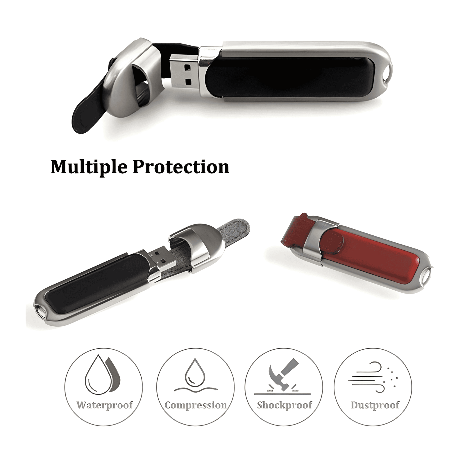 The distinctive leather strap design is truly eye-catching: when in use, it folds back to reveal the USB port, while when not needed, the port is neatly tucked away inside, protecting it while adding a decorative touch. The overall shape is sleek and elongated, with a hanging loop at the end for attaching a lanyard, making it easy to carry on the go. This transforms your storage tool into a stylish accessory that’s both beautiful and portable.