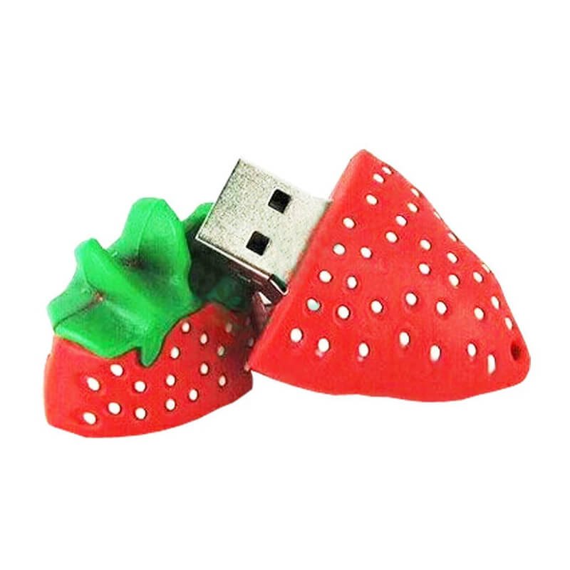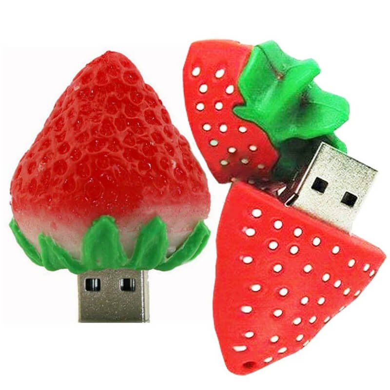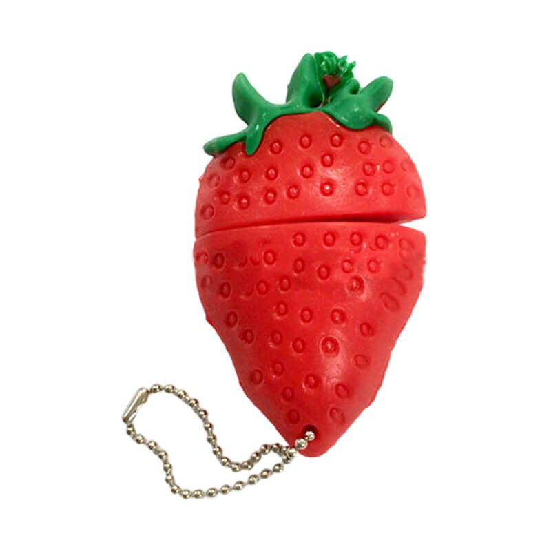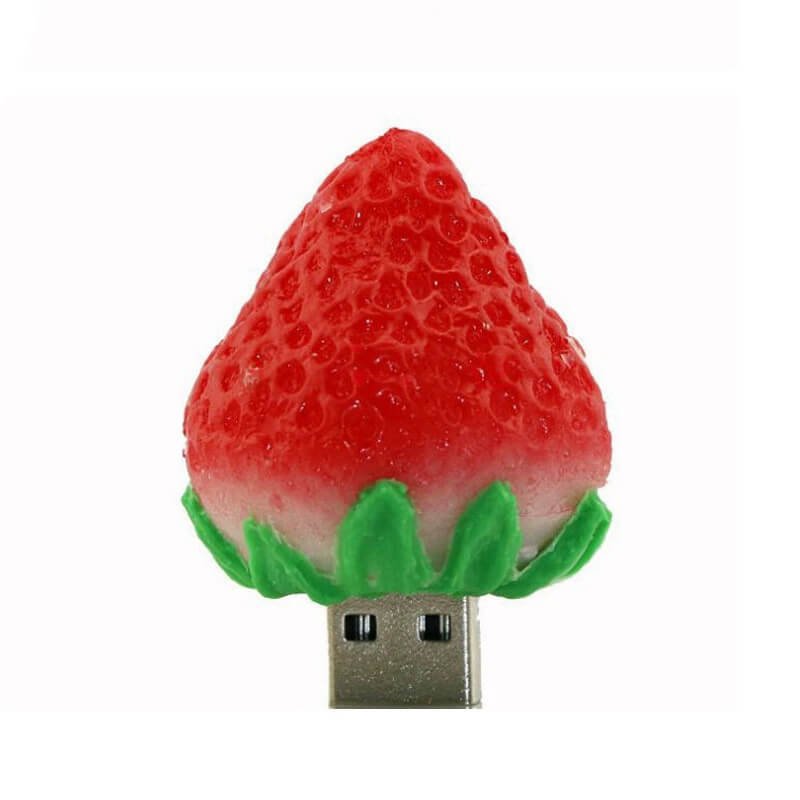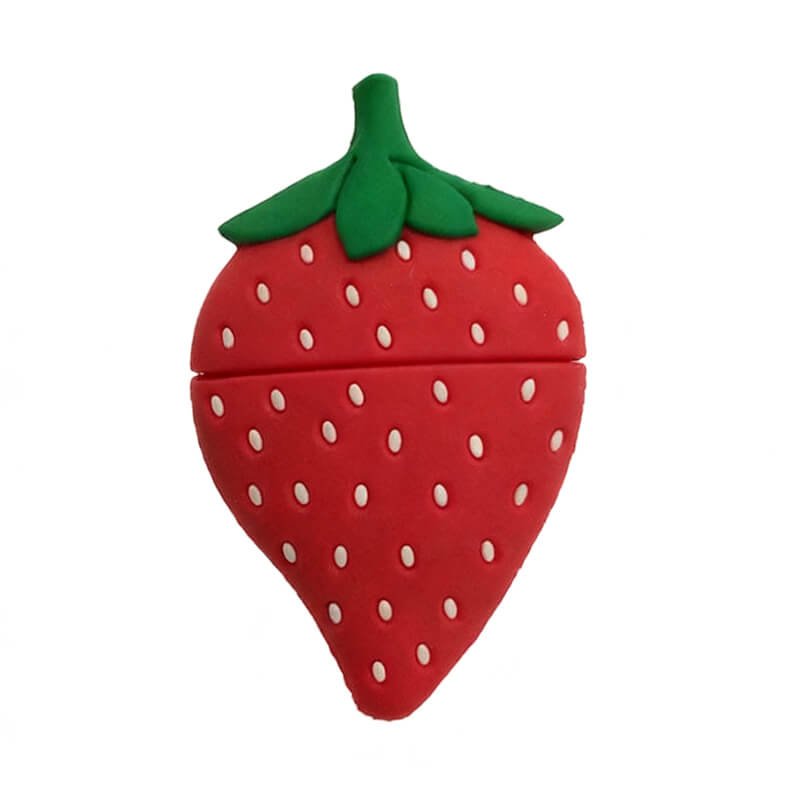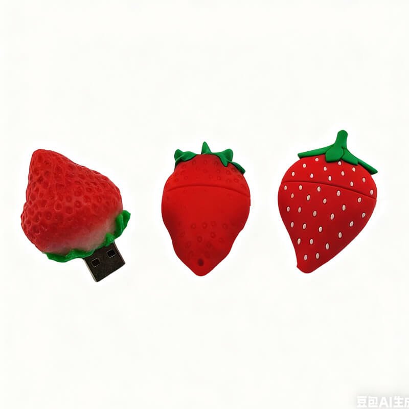 This strawberry-shaped USB drive is a 1:1 scaled-down replica of a real strawberry. Through meticulous craftsmanship, it faithfully recreates the berry’s red flesh, green calyx, and surface seed texture. Some models feature a segmented design that cleverly conceals the USB port and storage components within the fruit’s structure.