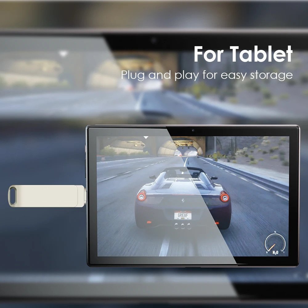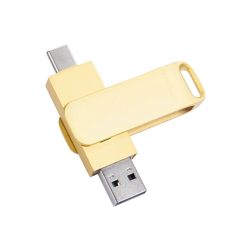 This flash drive features an innovative rotating design for enhanced convenience and protection. Whether connecting to an Android phone or computer, you can easily rotate it to reveal the desired interface. When not in use, simply rotate the cap to shield the port from dust, scratches, and potential damage. Crafted from metal, it offers durability, excellent heat dissipation, and resistance to wear and tear.