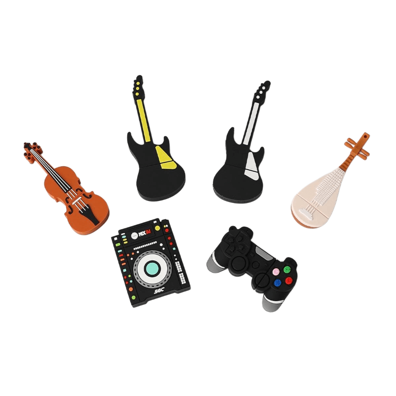 This guitar-shaped PVC soft-rubber USB drive infuses digital life with artistry and whimsy, making it a favorite among music enthusiasts and those who embrace individuality.