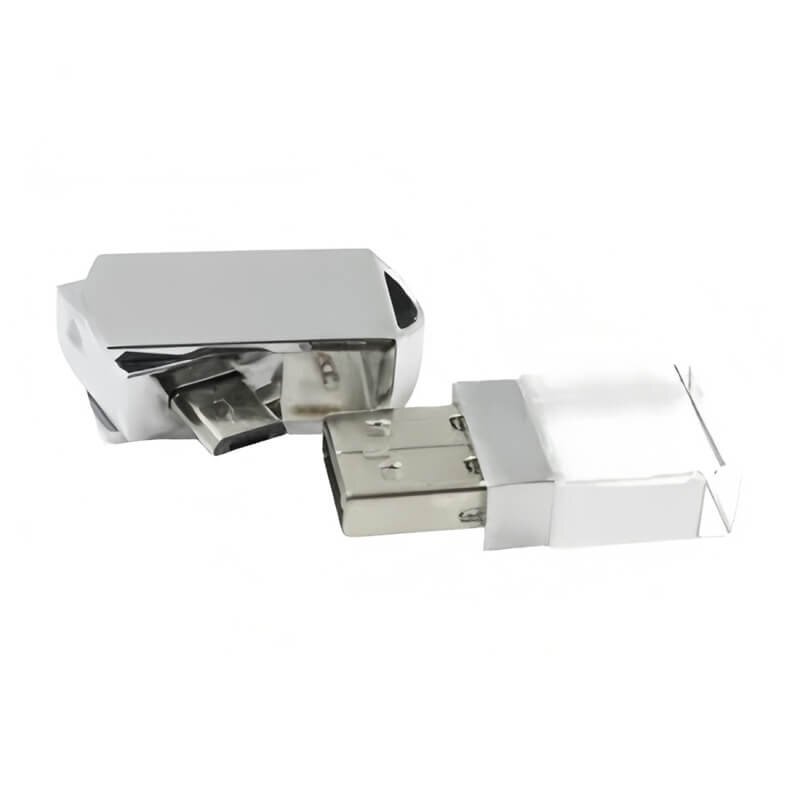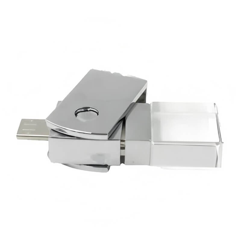 This mini rotating OTG crystal USB flash drive is extremely small and easy to carry. It can easily fit in your pocket or wallet, or you can hang it on your keychain. You can carry your data with you wherever you go.After connecting the device, this crystal USB drive will light up. Its rotating design and light-up function make its usage status clearly visible, giving it a high-tech look.