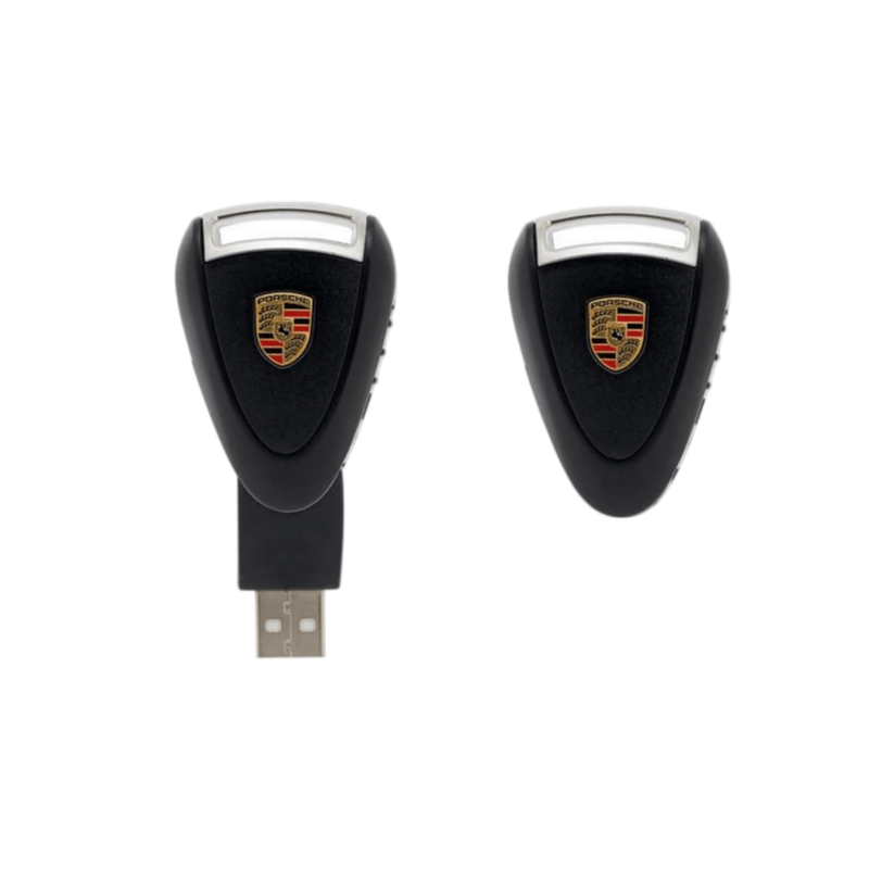 This Porsche car key-shaped USB drive employs high-precision injection molding to faithfully replicate the sleek triangular profile, metallic-finish edging, and intricate textures of the Porsche smart key in a 1:1 scale. The housing utilizes weather-resistant ABS engineering plastic, offering impact resistance and robust durability. The keyhole design accurately replicates the authentic key’s attachment functionality, allowing it to be stored alongside your Porsche key via a keyring for convenient, on-the-go access.