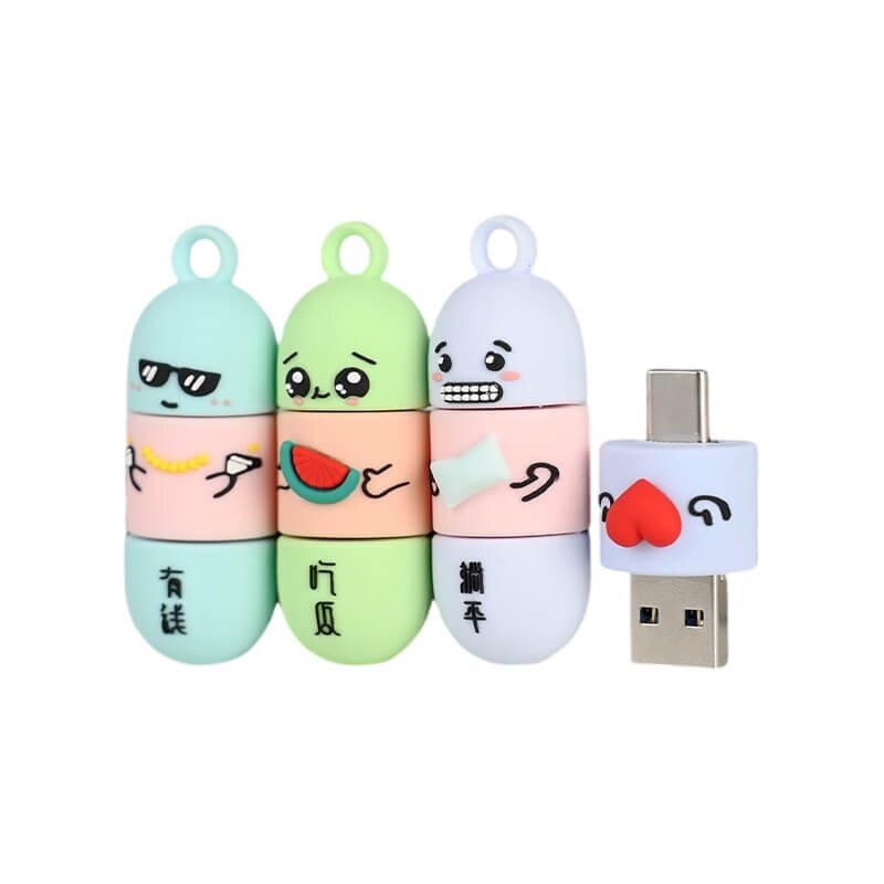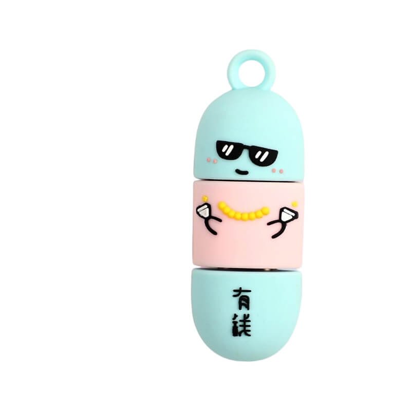 This capsule-shaped cartoon USB drive features an adorable capsule design, each exuding a unique charm that makes it irresistibly endearing. Crafted from soft PVC material, it’s waterproof, dustproof, and highly corrosion-resistant. Affordable and durable, it resists yellowing over time. Designs include an adorable giraffe, a rich character sporting sunglasses and a gold chain, a foodie holding a watermelon, and a slightly resigned lie-flat figure. These blend internet slang with cartoon elements, creating both fun and relatability. Colors draw from the macaron palette—soft blues, gentle pinks, fresh greens, and delicate purples—creating a soothing, visually comforting effect. Each USB drive looks as tempting as candy.