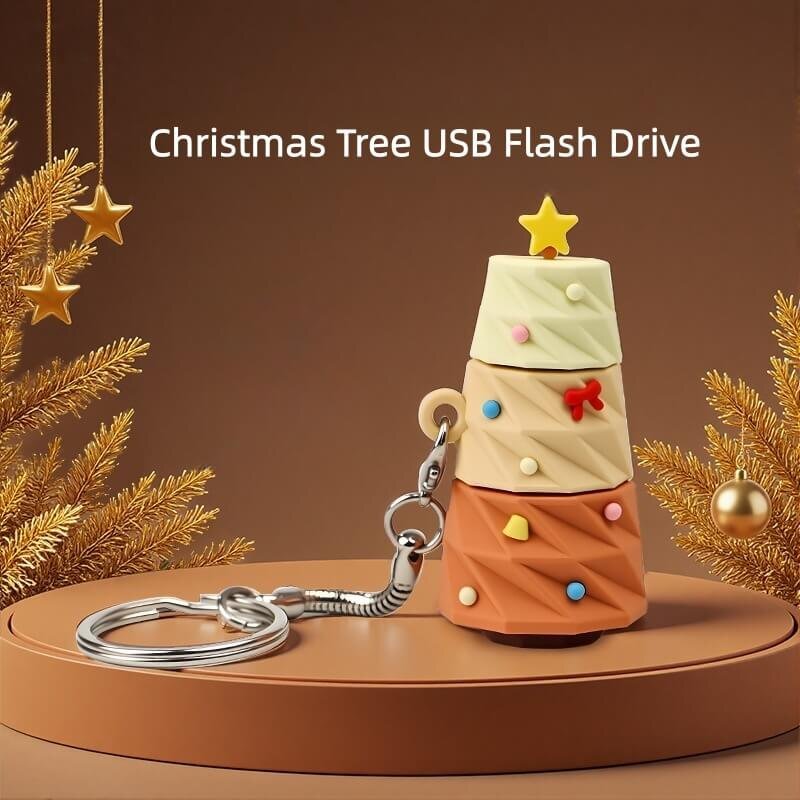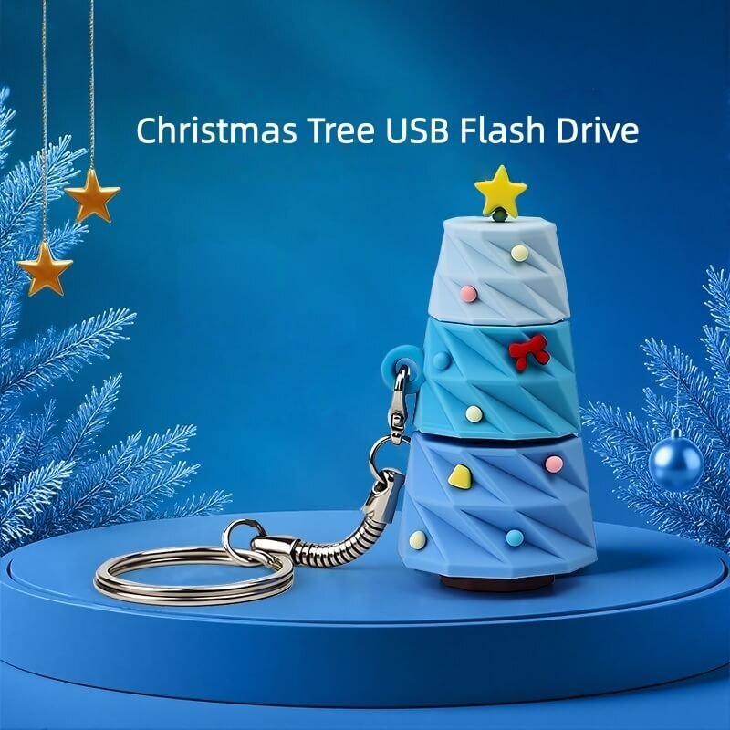 Созданная в виде традиционной рождественской елки, она имеет многослойную конструкцию с верхушкой в виде звезды и разноцветными орнаментами. Каждый слой снимается, открывая доступ к USB-накопителю. Для удобства переноски в комплект входит металлическое кольцо для ключей.