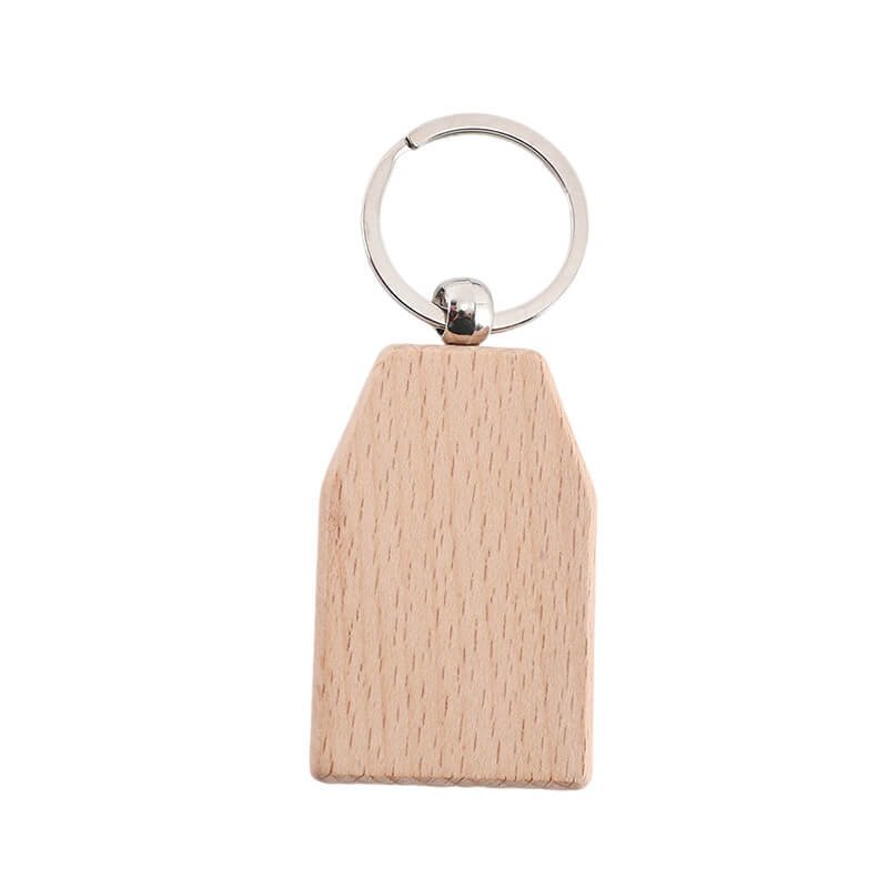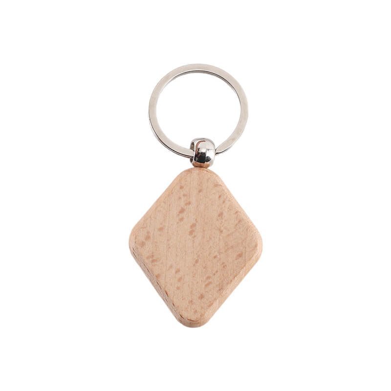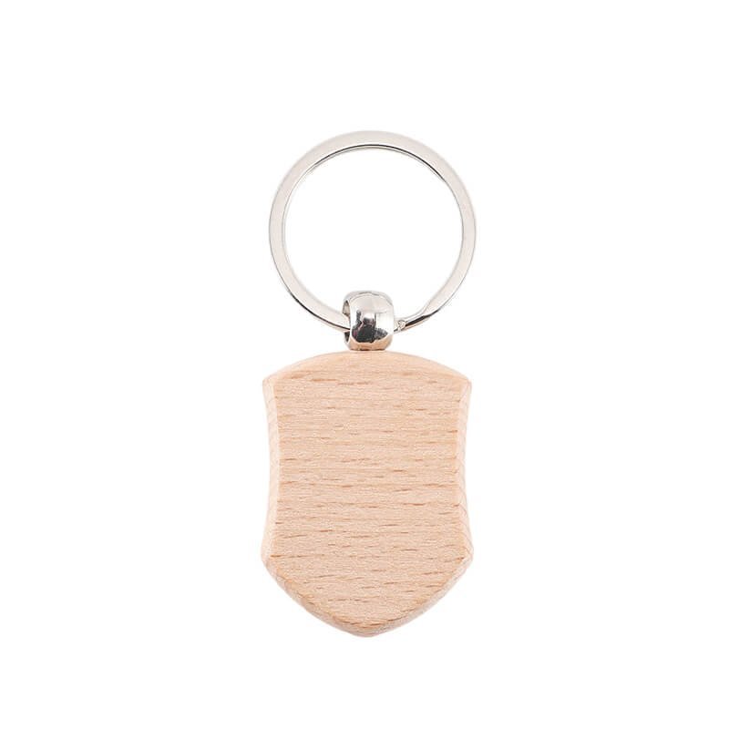 El llavero de madera está disponible en varios colores y formas, todos son modelos de stock y se puede personalizar el logo